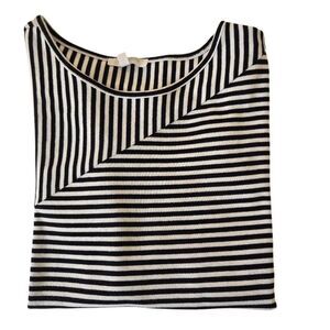 T By Talbots Womens Striped Cotton Blend Ribbed Knit Tee Black White Small
