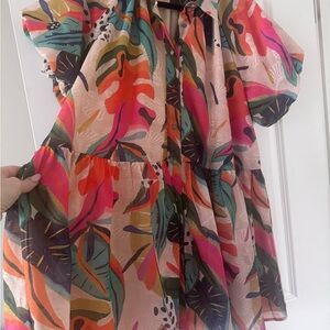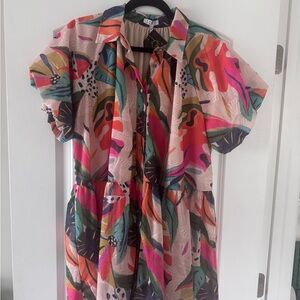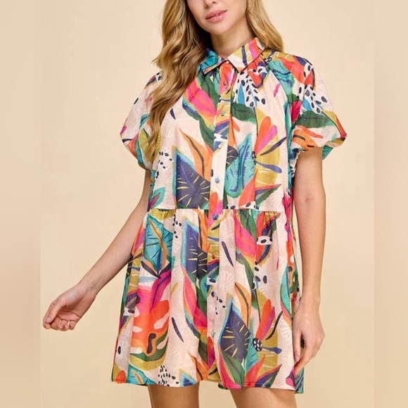 This dress is so tropical and fun! It's exactly what you want for a beachy vacation! That print is so unique and we love the hues! Once you have this dress in your hands, you'll have exactly what you need this summer!