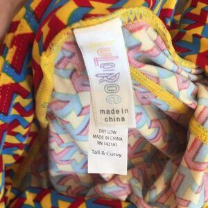 This is a brand new pair of lularoe leggings. They have never been worn, but I do not store them in the original packaging. They are technically a size TC but I classified them here as a size XL. Yellow with blue and red arrow print. Price is firm. Thanks for looking.