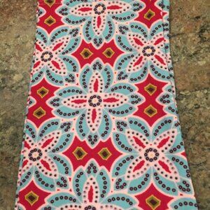 Red with blue and pink floral like print.