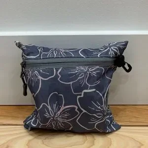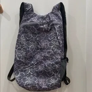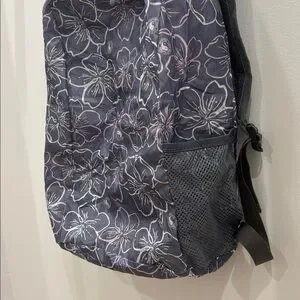 T&C Packable Backpack. Packable, zipper closure case with hook. Backpack itself is also zipper closure with adjustable straps and a side water bottle holder