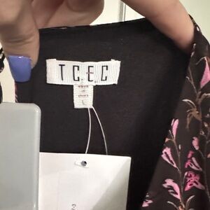 TCEC Black and Pink Floral Long Sleeve Dress