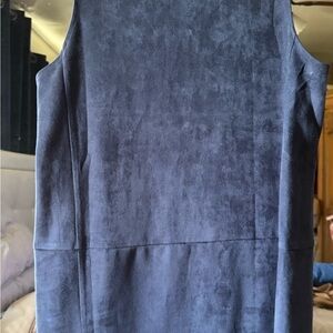 Elegant blue boutique suede sleeveless dress with pockets. Perfect for any occasion.