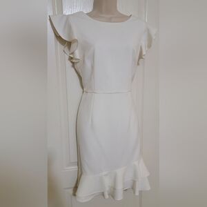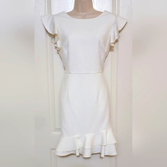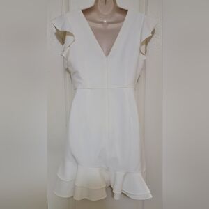 Chic mini dress with ruffle sleeves. Soft cream color. Ideal for stylish outings.