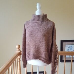 TCEC Feather Knit Warm Brown Turtlececk Sweater With Fringe Accents