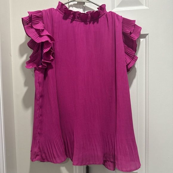 Vibrant fuchsia blouse with playful ruffles. Perfect for adding flair to your wardrobe.