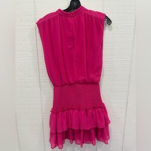 fuchsia mini dress with ruffled skirt • sleeveless • perfect for a night out • high neck • small pads in shoulders • size small