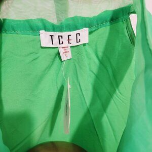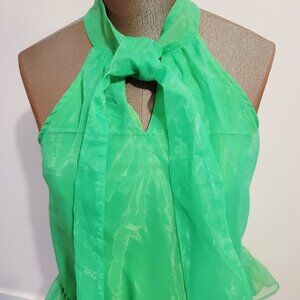 TCEC Hot Green Sleeveless Dress Bow Ribbon Neck Tie Ruffle Size Large