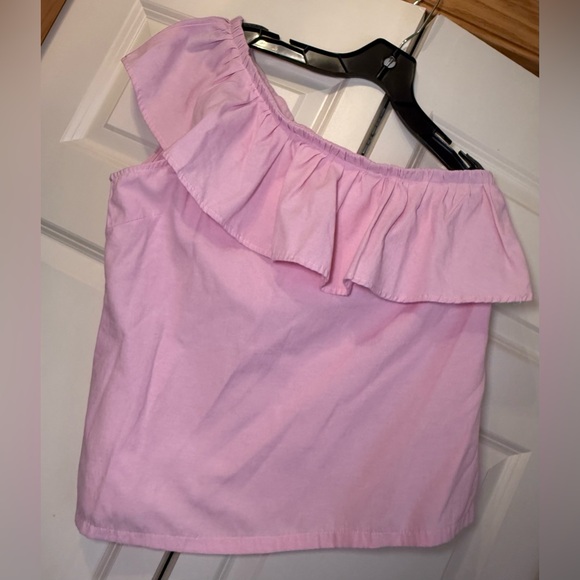 Charming light pink blouse with ruffle detail. Off-shoulder design for a stylish look. Size L.