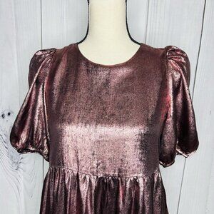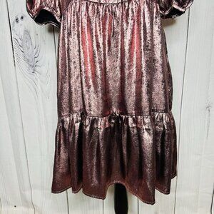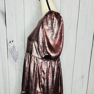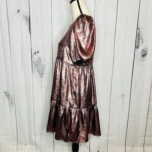 TCEC Metallic Dusty Rose Babydoll Dress Tiered Short Sleeves Size S