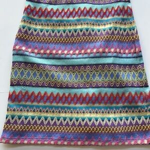 TCEC Multicolored Mini Dress NWT. Woven tribal pattern mini dress. Gorgeous pastel colors. Square neckline. Bodycon fit. Great for spring & summer! 95% polyester, 5% spandex. New with tags(there are a couple of very small snags—see last photos) Size Medium