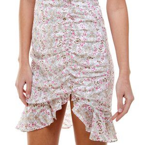 TCEC's one shoulder sleeveless dress with shirred details on the side, and ruffles. Floral pattern chiffon cocktail mini dress. Zipper closure on the side.