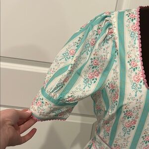 Tags: Short Sleeve Floral and Stripes Cottagecore Romantic Feminine Timeless Brunch Wedding Guest Garden Party Tiered Wedding Shower
