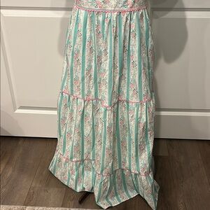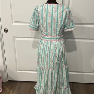 TCEC Pastel Pink Mint Green Floral Short Sleeve Cottagecore Dress Size Large