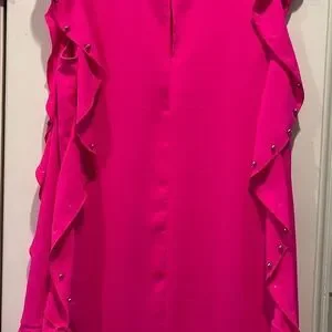 Barbie pink dress with ruffle details. Silver stud accents. Worn twice by my daughter. In excellent condition.