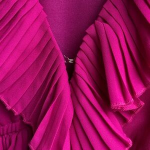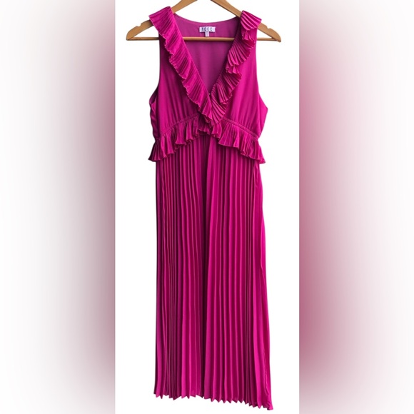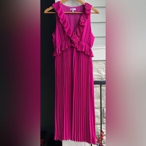 Elegant maxi dress with ruffle details. Sleeveless design. Perfect for any occasion.