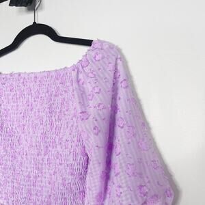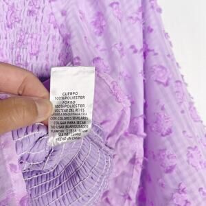 TCEC Purple Small Gingham Cropped Smocked Off The Shoulder Top Blouse 3/4 Sleeve
