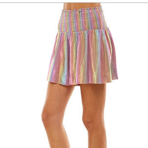 Multicolor smocked high waist shorts with a shiny