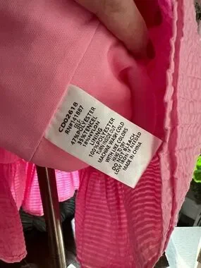 Pink TCEC size S mini dress with scrunch ruffle top and ruffle hem. Zip back. Rough measurements in photos. Body: 47% polyester 35% tencel 18% nylon. Lining: 100% polyester.