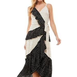 TCEC Ruffle Polka Dot Wrap Midi Dress NEW