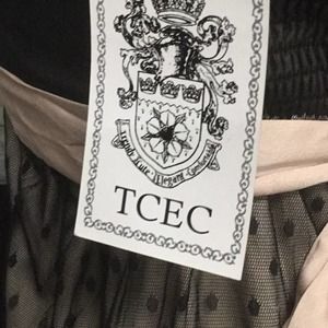 TCEC Black strapless top. Ties in the back Rubber strip on top to keep front from falling.