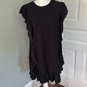 TCEC Studded Ruffle Dress Black Silver Short Sleeve Size Medium