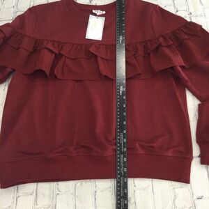 TCEC Women’s Ruffle Pullover Sweatshirt Size Large Color Burgundy NWT. Please reference attached pictures for style,color,condition,and approximate sizing.