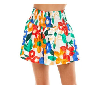 TCEC floral bright Poppy stetch waist shorts. Size small