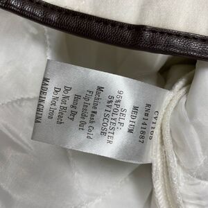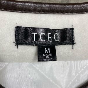 TCEC Cream & Brown Trim Quilted Full-Zip Vest NWOT