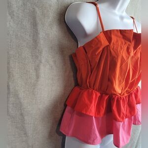 Bright and beautiful pleated colorblock tank. Elastic waist for a perfect fit as well as adjustable straps. Size large