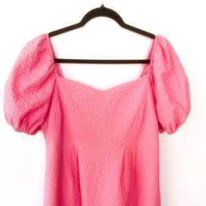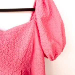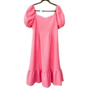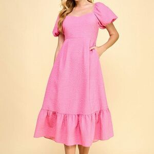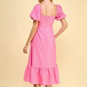 TCED Pink Textured Floral Sweetheart Neckline Puff Sleeve Midi Dress