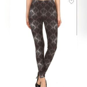 TCLC Demask Black Silver Grey Full Length Leggings Size 12-20 NWT