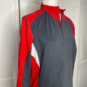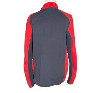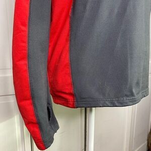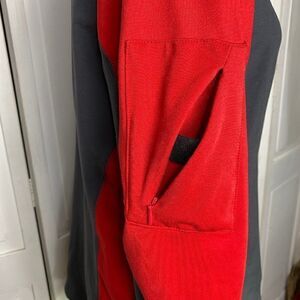 TCM Gray Red Pullover Athletic Active Sport. Zip up with high collar. Thumb holes. Lots of great pockets for items. Bottom has adjustable elastic string.