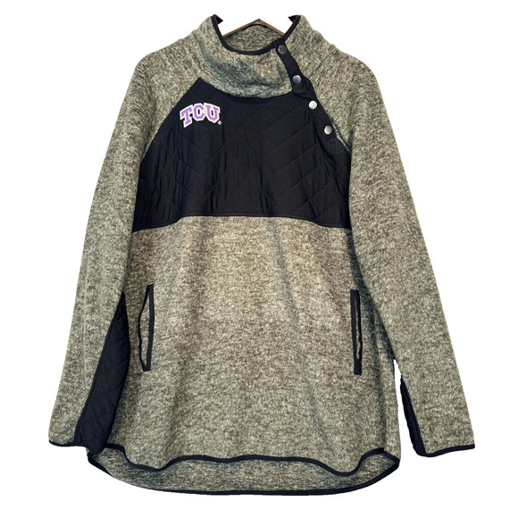 TCU Horned Frogs Fleece Pullover Jacket Women's Size XL Gray Gameday