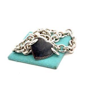 Authentic Tiffany and Co. 925 Sterling Silver Heart Tag Choker Necklace.