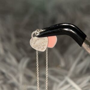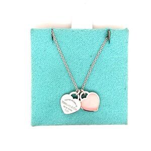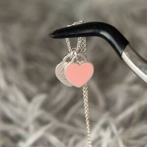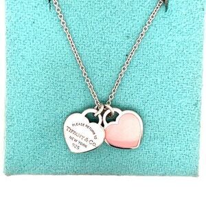 Authentic T&Co. Sterling Silver 925 Pink Mini Double Heart Tag Necklace.