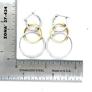 Authentic Tiffany & Co. Triple Hoops Earrings by Paloma Picasso in 18K Gold and Sterling Silver 925.