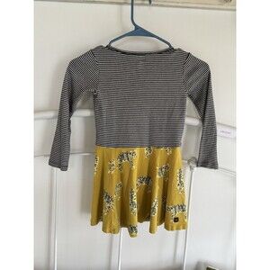 TEA COLLECTION Namaste Nepal Stripe Cats Black Gold Yellow Twirl Dress Girls 6