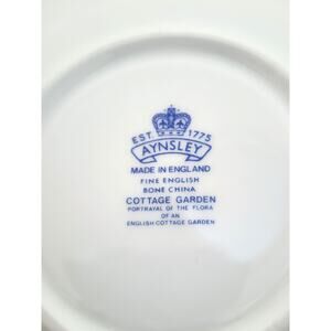 Vintage cup and saucer set. This is made by Aynsley - Made in England. The pattern is Cottage Garden. The cup and saucer have a swirl finish to them. There are different floral designs on each side of the cup. This is a delicate tea cup and saucer.