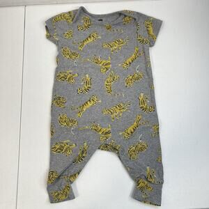 TEA Collection 6-9 Month Romper Outfit Lion Print Short Sleeve Gray Cotton