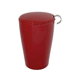 Charming tea infuser cup featuring a beautiful red color. Includes a lid and infuser.