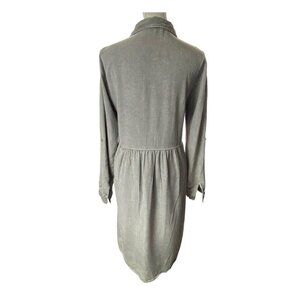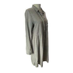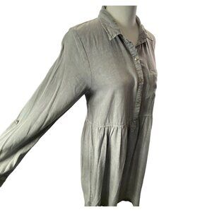 TEA N ROSE Women Shirt Dress Size S Gray Burnout Long Roll Tab Sleeve 81-24
