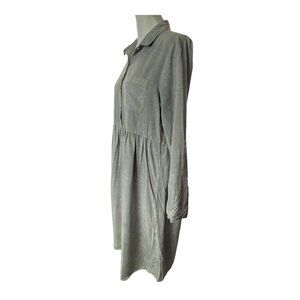 The TEA N ROSE Women Shirt Dress in size S is a versatile and stylish option for various occasions. This gray dress features a solid pattern with a V-neckline and long roll tab sleeves, giving it a unique and fashion-forward look. Made from 100% Tencel chambray fabric, this knee-length dress is perfect for summer, fall, and spring seasons. With its bohemian and cottagecore theme, this shirt dress is ideal for travel, parties, or casual wear, making it a must-have piece in any woman's wardrobe.
