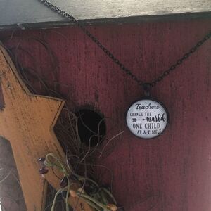 (i2) Pretty and meaningful necklace for a teacher. These make amazing gifts! Zinc alloy metal. Chain is about 20”. Glass cabochon pendant. New in package.