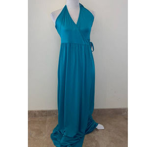 TEAL BACKLESS TIE DRESS FEATHERS SIZE LARGE NWT