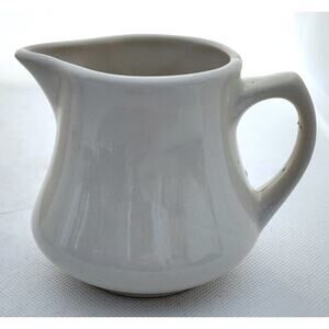 A small table teapot that holds 16 oz (2 cups) and 2 matching creamers that each old 1 cup. I believe this is a Homer Laughlin design. The mark on the bottom is an embossed mark and not printed. They are simple/classic designed set. There is no sugar bowl. These 3 pieces are the teapot and 2 matching creamer pourers. They are a light beige.