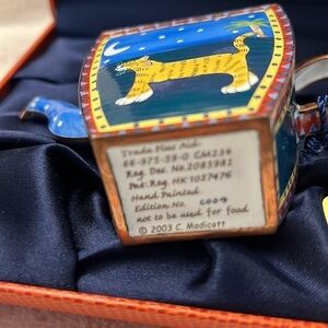 Here is TEAPOT mini ART enamel TIGER Still of the Night Charlotte di Vita NIB from 2003. This had never been removed from the box until just now when I took the photo. If you collect these you know the quality of them