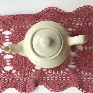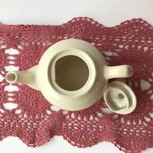 Interpur Teapot made in Taiwan ROC. Pretty rose design of pink and green on a cream white . Aprox 6” height 9” across.**last photo shows hairline crack in glaze only