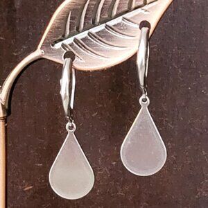 Each earring has a stainless steel teardrop charm suspended from stainless steel Lever Back ear wires.