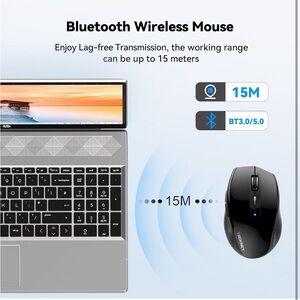 TECKNET Bluetooth Mouse, 4800 DPI Wireless Mouse, 2-Year Battery 6 Adjustable DPI, 6 Buttons Compatible with Laptop/Windows/Computer - Black